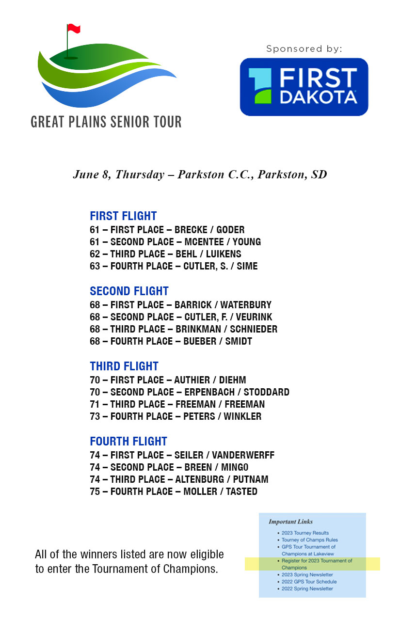 - June 8, Thursday – Parkston C.C., Parkston, SD