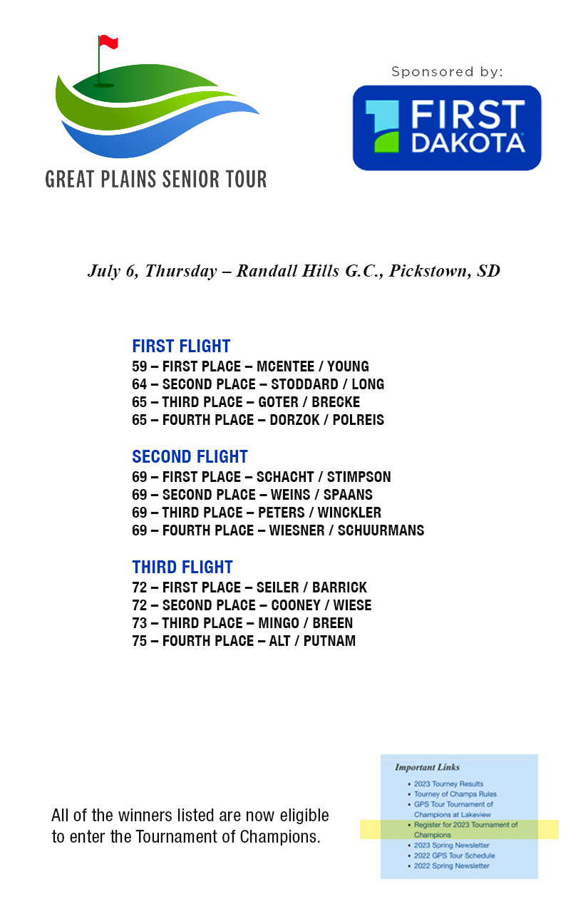 - July 6, Thursday – Randall Hills G.C., Pickstown, SD