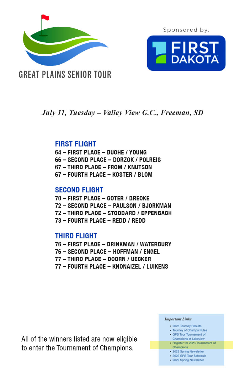 - July 11, Tuesday – Valley View G.C., Freeman, SD