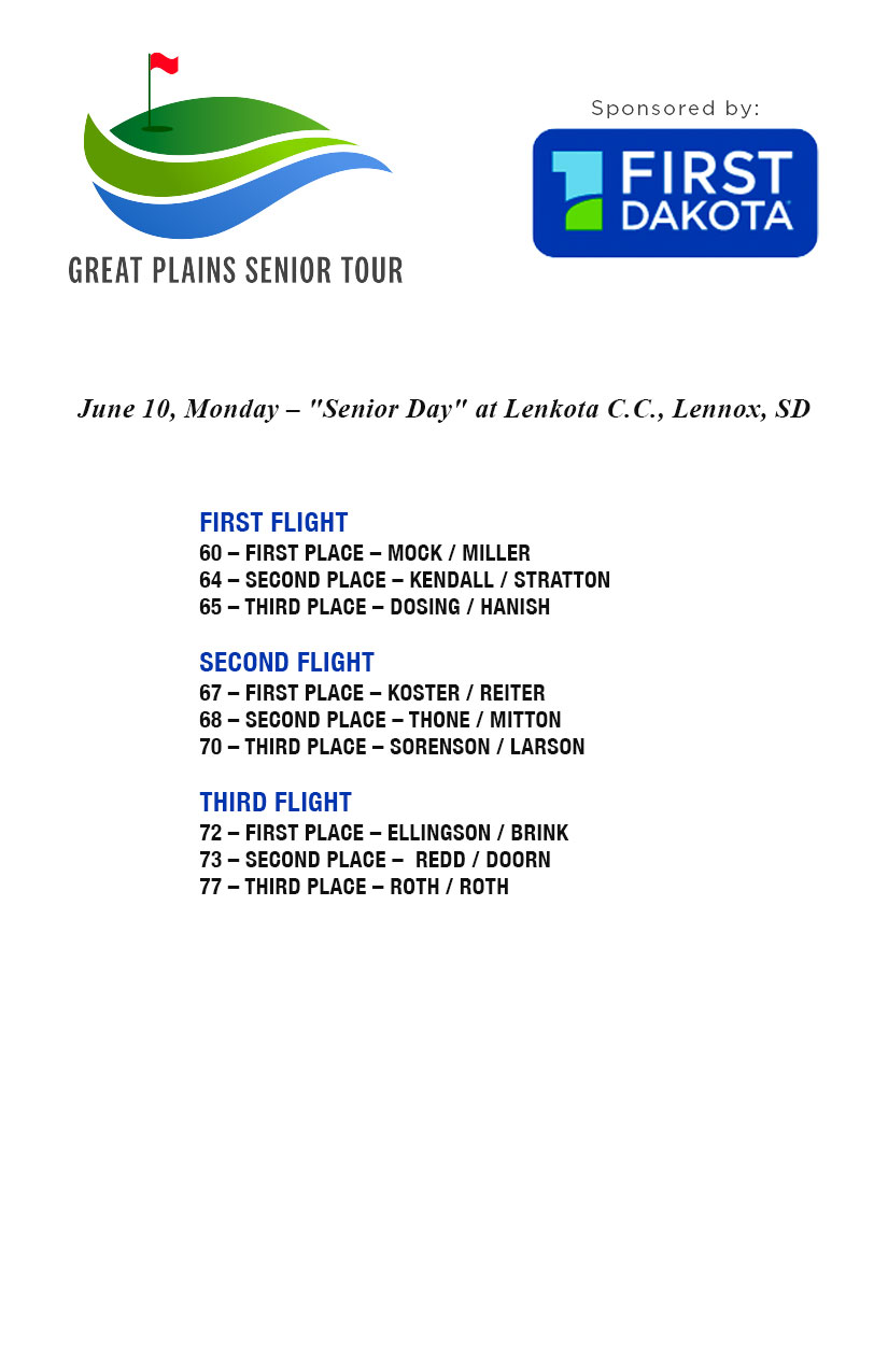 - June 10, Monday – "Senior Day" at Lenkota C.C., Lennox, SD, 605-647-5335