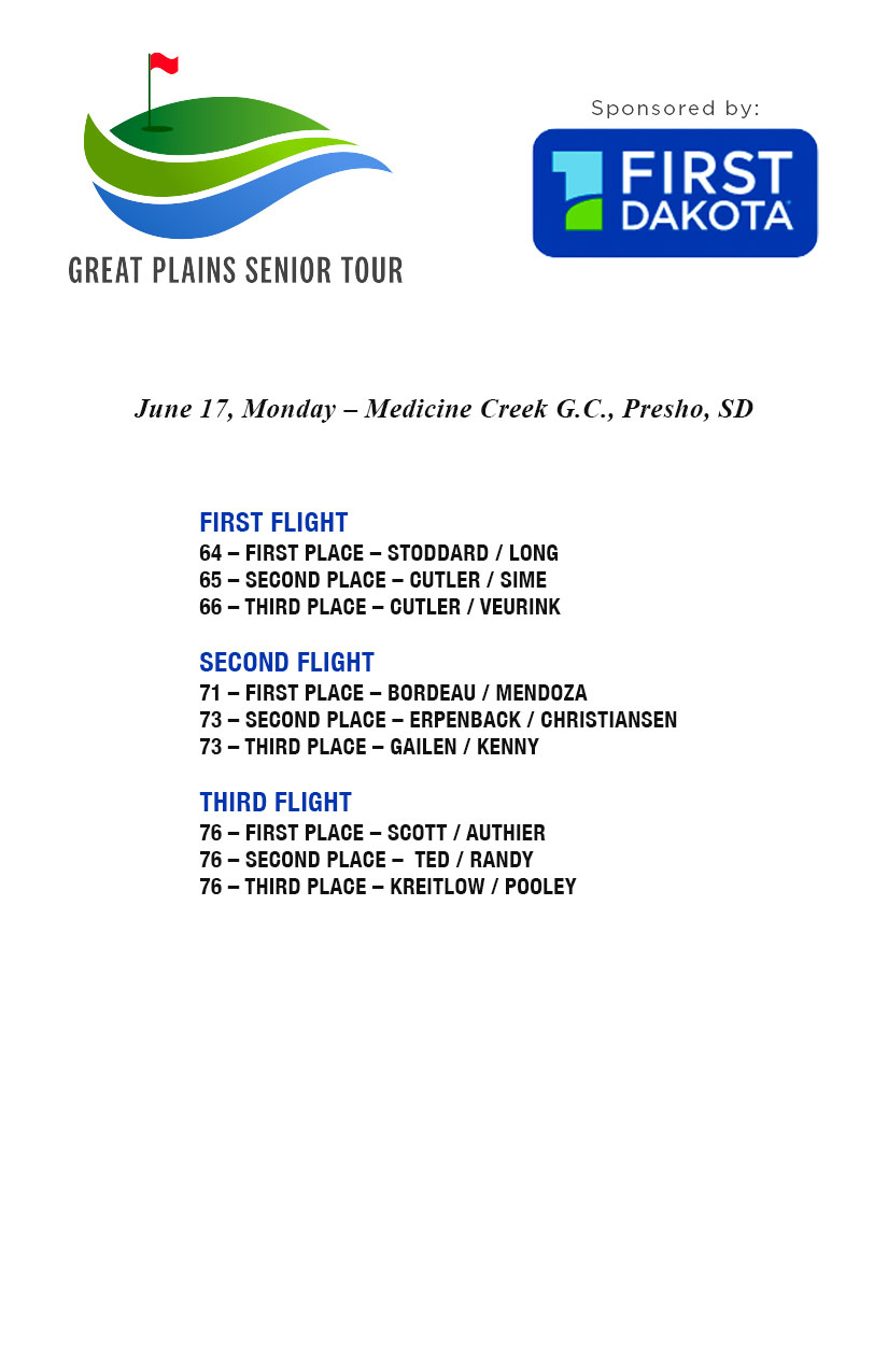 - June 17, Monday – Medicine Creek G.C., Presho, SD, 605-895-2659