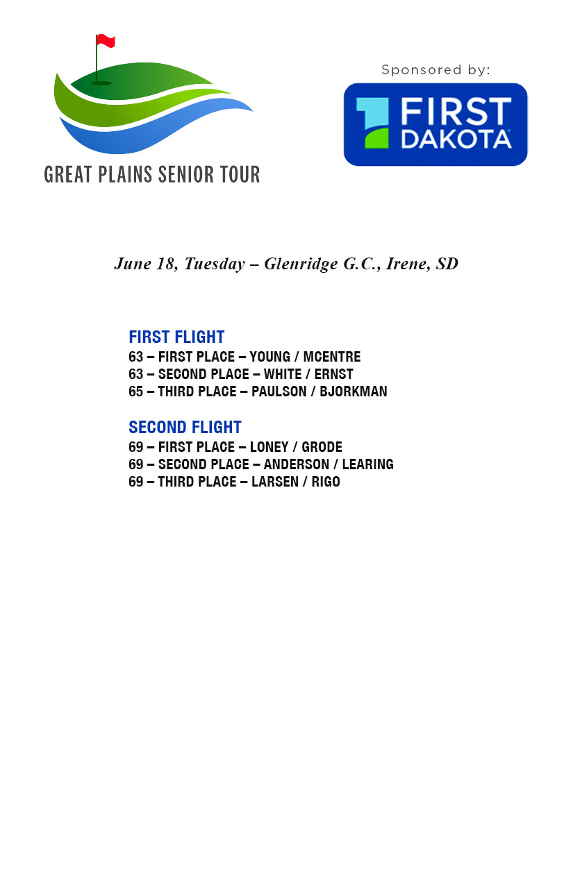 - June 18, Tuesday – Glenridge G.C., Irene, SD, 605-263-3546