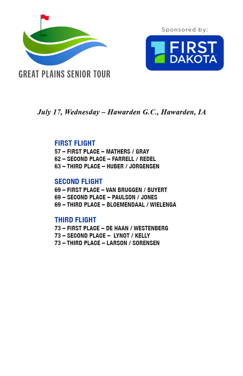 - July 17, Wednesday – Hawarden G.C., Hawarden, IA, 712-551-4444 [This is the rescheduled date]