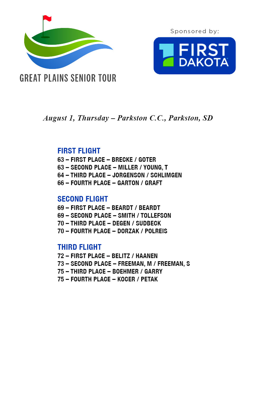 - August 1, Thursday – Parkston C.C., Parkston, SD, 605-928-3092