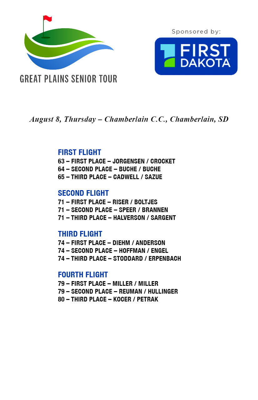 - August 8, Thursday – Chamberlain C.C., Chamberlain, SD, 605-234-4451