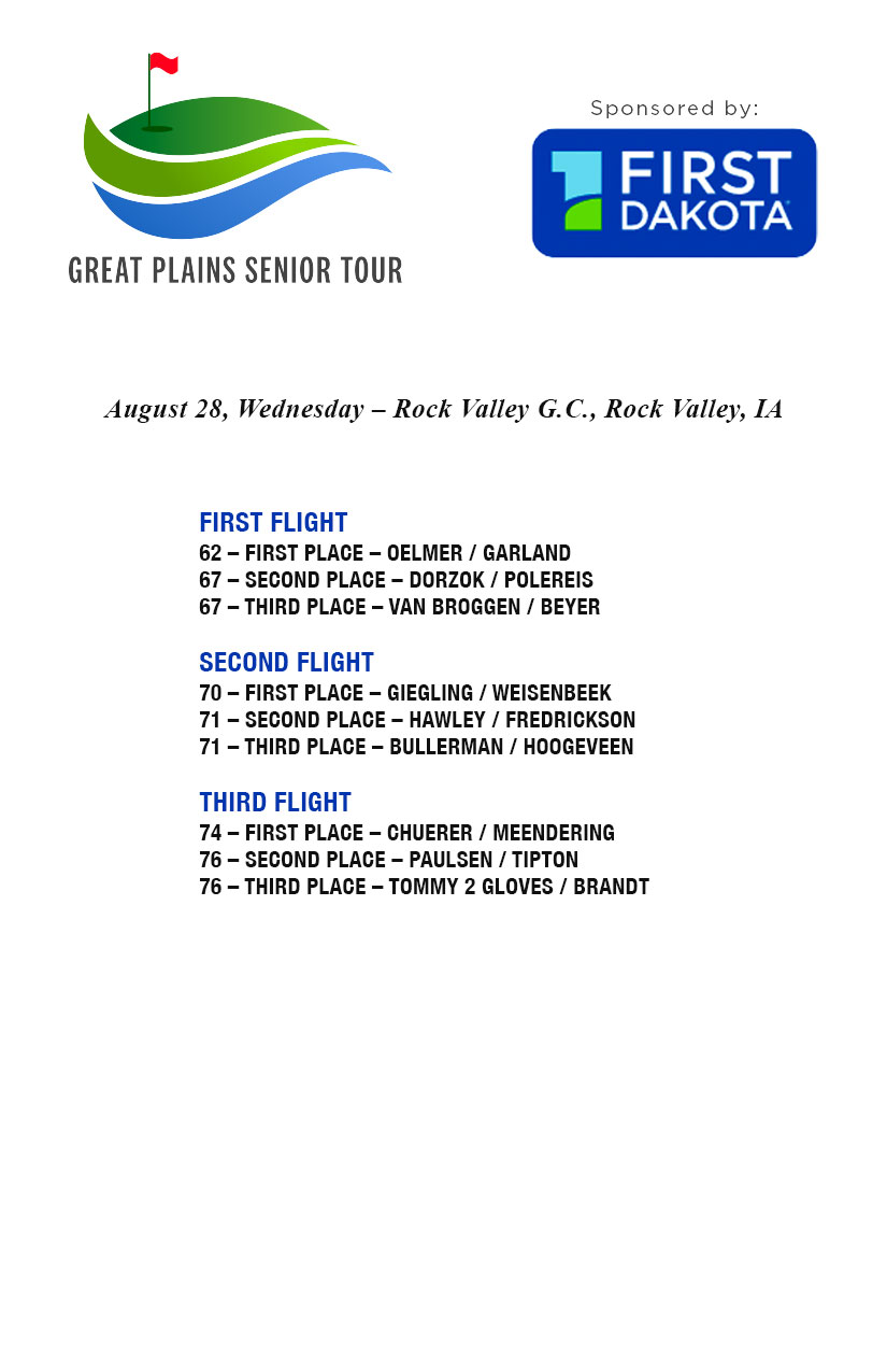 - August 28, Wednesday – Rock Valley G.C., Rock Valley, IA, 712-476-2427