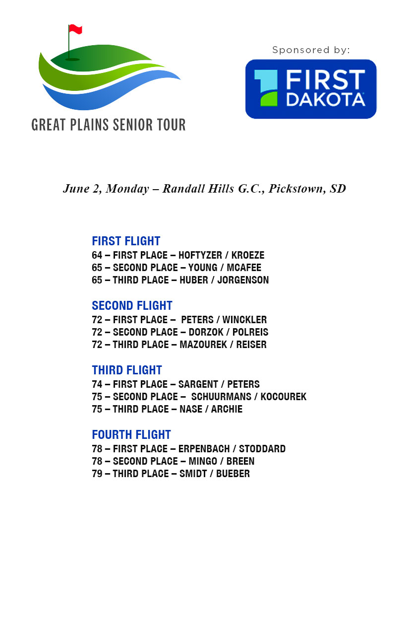 - June 2, Monday – Randall Hills G.C., Pickstown, SD, 605-487-7884