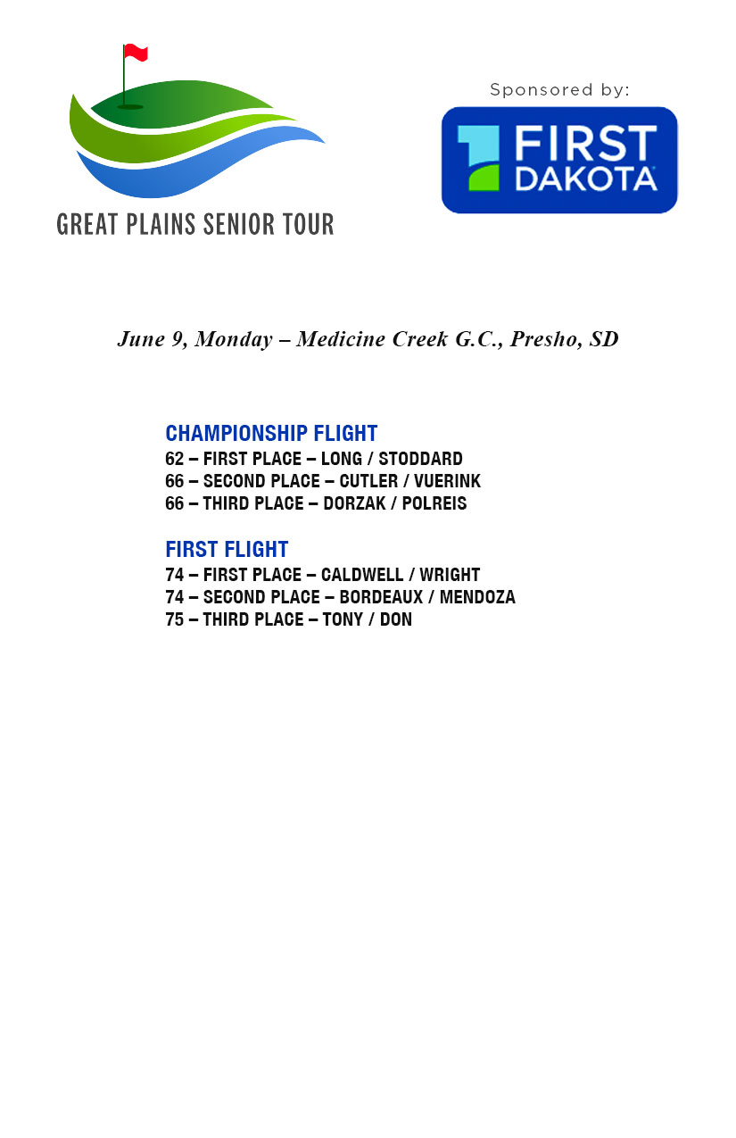 - June 19, Monday – Medicine Creek G.C., Presho, SD
