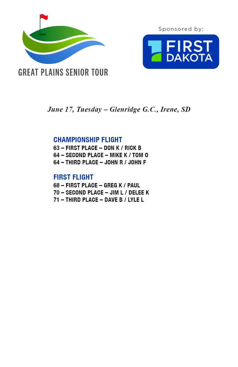 - June 17, Tuesday – Glenridge G.C., Irene, SD, 605-263-3546