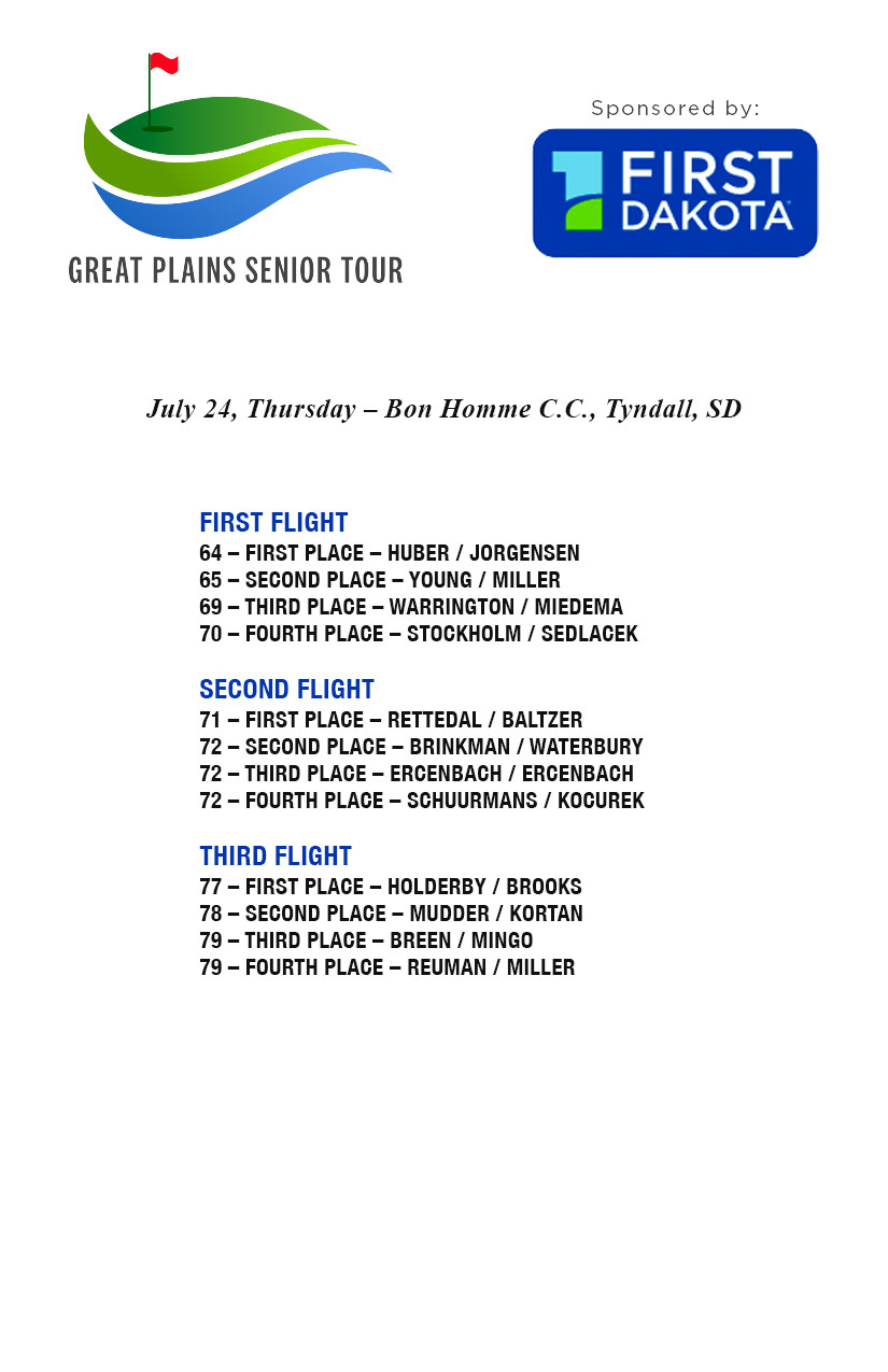 - July 24, Thursday – Bon Homme C.C., Tyndall, SD, 605-589-3186