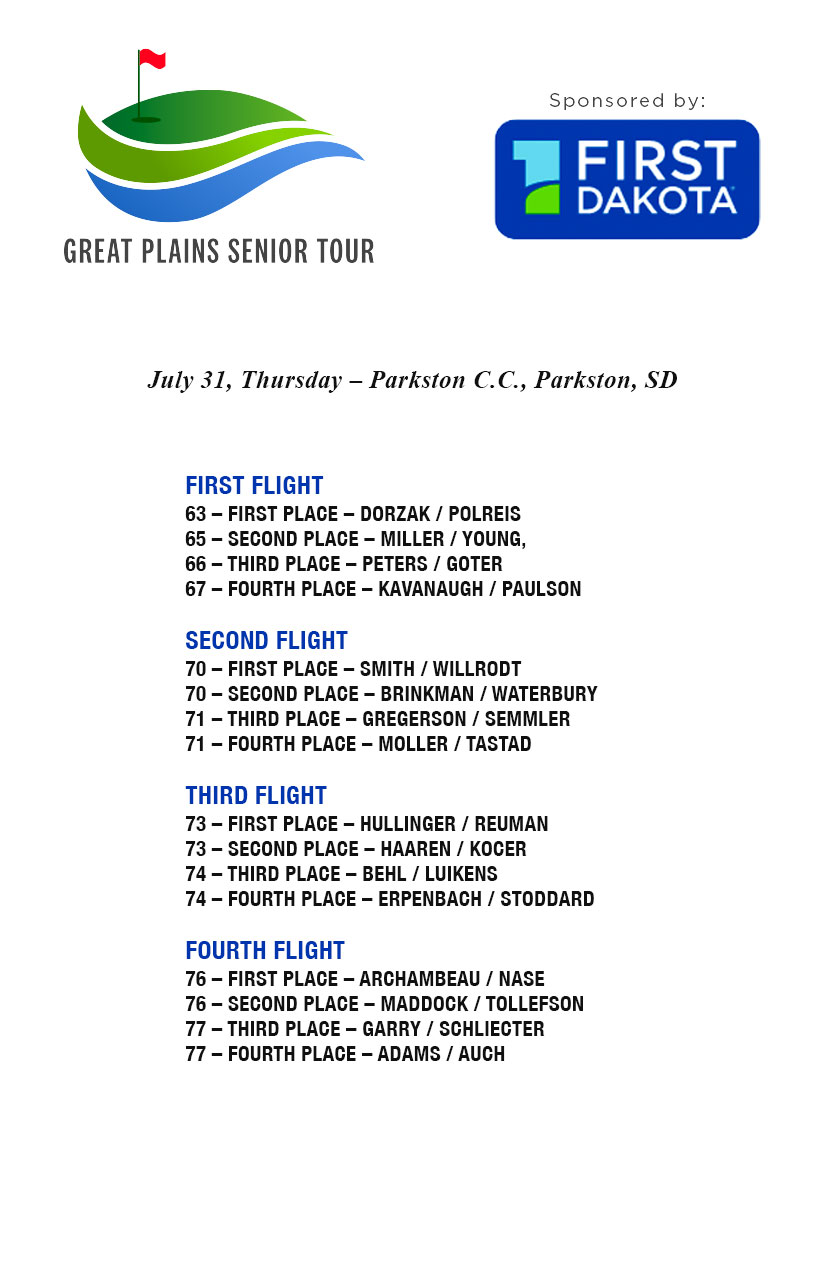 - July 31, Thursday – Parkston C.C., Parkston, SD, 605-928-3092