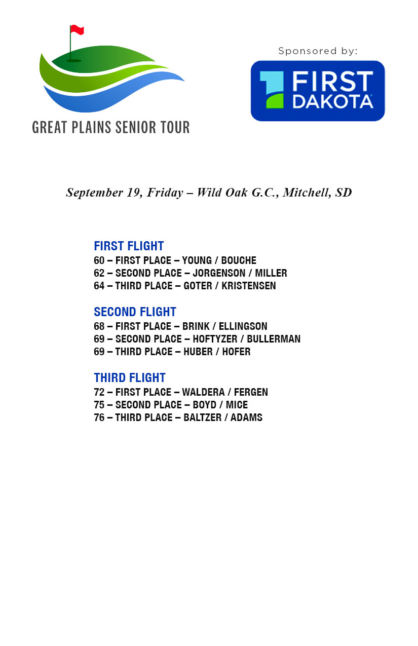 - September 19, Friday – Wild Oak G.C., Mitchell, SD, 605-996-2084.