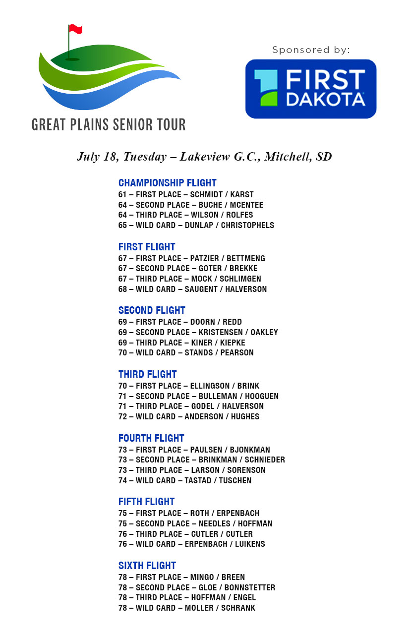 - July 18, Tuesday – Lakeview G.C., Mitchell, SD